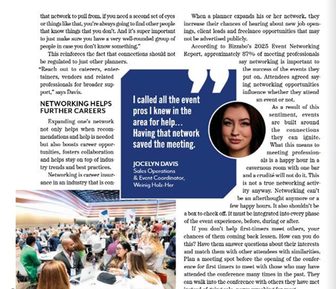 Featured in Corporate & Incentive Travel Magazine, October 2025 edition, in the article Get Connected: Why Every Meeting Planner Should Network More. The feature included insights on the strategic value of intentional networking within the events industry and highlighted the role strong professional relationships play in driving long term growth, collaboration, and successful event execution.